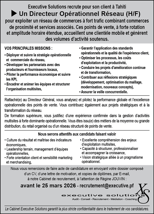Directeur Opérationnel Réseau (H/F)